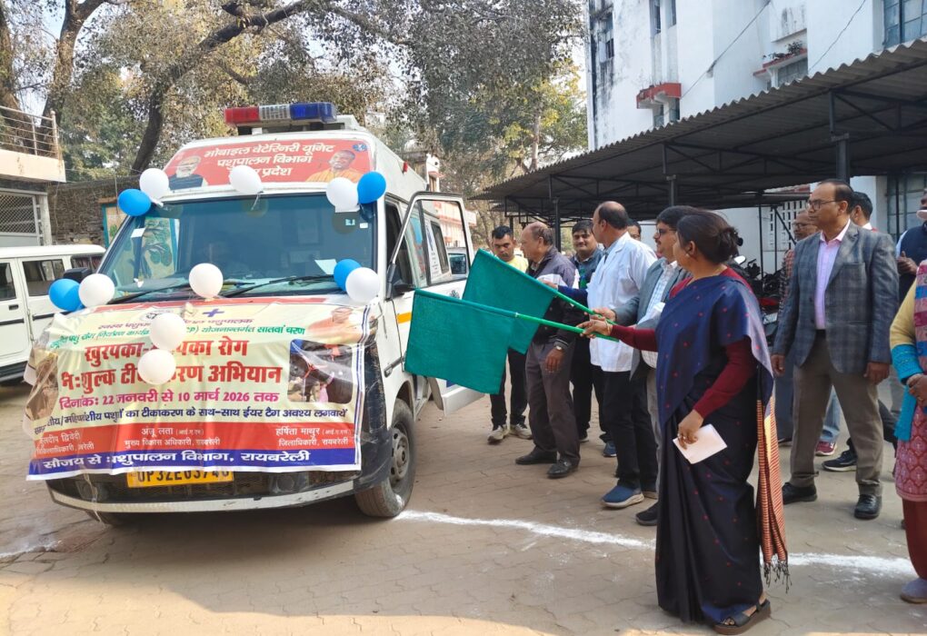 मुख्य विकास अधिकारी ने पशु चिकित्सा वाहनों एवं पशु टीकाकरण टीमों को हरी झंडी दिखाकर किया रवाना नरेंद्र त्रिपाठी रायबरेली रायबरेली जनपद में पशुधन को खुरपका-मुंहपका (एफएमडी) जैसी गंभीर संक्रामक बीमारी से बचाने के उद्देश्य से राष्ट्रीय पशु रोग नियंत्रण कार्यक्रम (एनएडीसीपी) के अंतर्गत 45 दिवसीय सघन टीकाकरण अभियान के सातवें चरण की शुरुआत की…