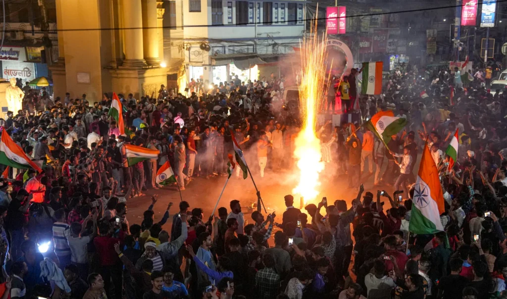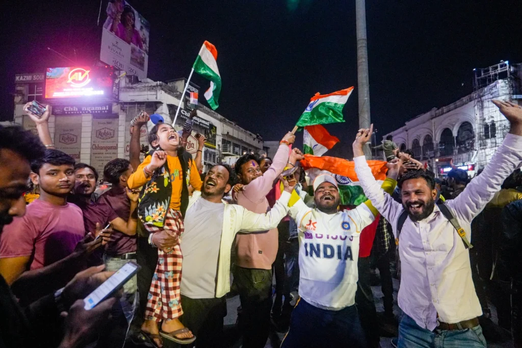 टीम इंडिया के जीत पर पूरा आसमान पटाखों के धूम-धड़ाके से गूंजा उठा. राजधानी हो या फिर छोटा कस्बा और गांव… हर गली मोहल्ला खुशी से ऐसा झूमा कि दुनिया देखती रह गई. शहरों की सड़कों से गलियों तक फैंस की भीड़ से पूरी तरह भर गई.
