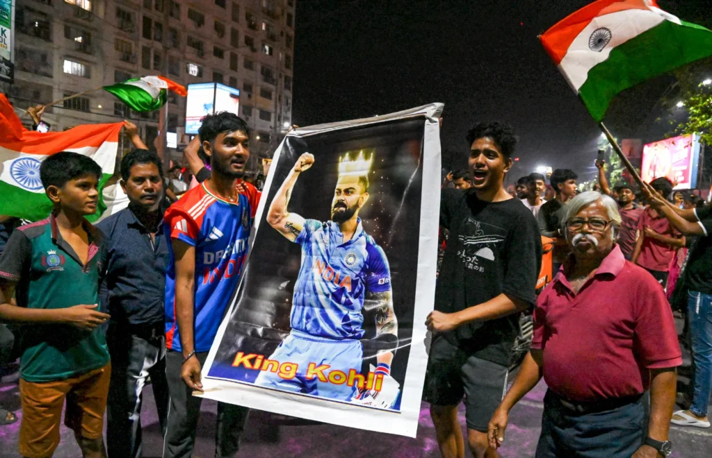 देश के तमाम शहरों की सड़कों पर फैंस की भारी भीड़ जुट गईं , भारतीय फैंस ने टीम इंडिया की जीत की खुशी मे ऐसा जश्न मनाया की जैसे मानो दिवाली का त्योहार हो , टीम इंडिया का हर फैन इतना खुश था कि खुद को झूमने से नहीं रोक सका. फैंस ने अपने पंसदीदा खिलाड़ियों के पोस्टर लेकर जमकर डांस किया , साथ ही टीम इंडिया की जीत पर आतिशबाजी ना हो, ऐसा भला कैसे हो सकता है.