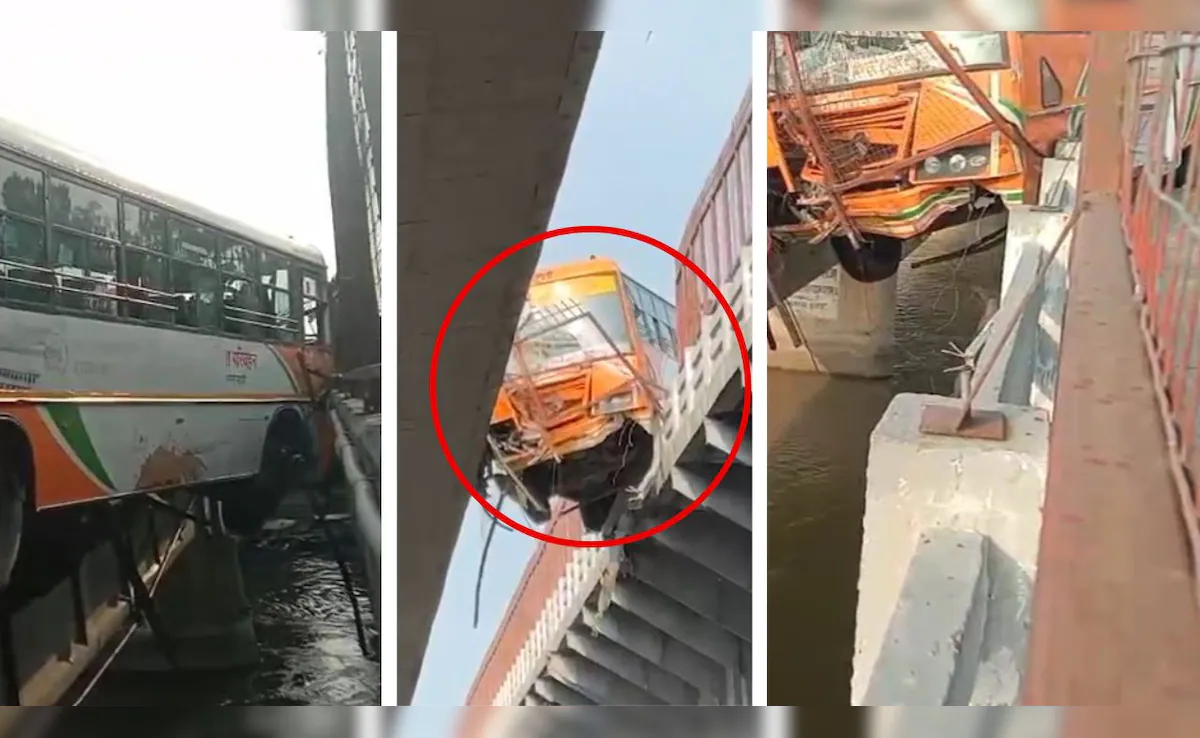 जानकारी के अनुसार, हादसा हापुड़ के ब्रजघाट इलाके में हुआ। यूपी रोडवेज की बस गाजियाबाद से गढ़मुक्तेश्वर की ओर जा रही थी। सुबह करीब 8 बजे जब बस ब्रजघाट पुल के बीचोंबीच पहुंची, तभी सड़क पर पड़ा एक बड़ा पत्थर आगे के पहियों के नीचे आ गया। चालक ने बस को संभालने की कोशिश की, लेकिन अचानक संतुलन बिगड़ गया और बस बाईं ओर झुकने लगी। कुछ ही सेकंड में बस का आधा हिस्सा पुल से बाहर निकल गया और वह हवा में लटक गई।